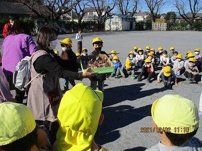 本日,旭町保育園のライオン組の皆さんが本校の校庭に来ました。