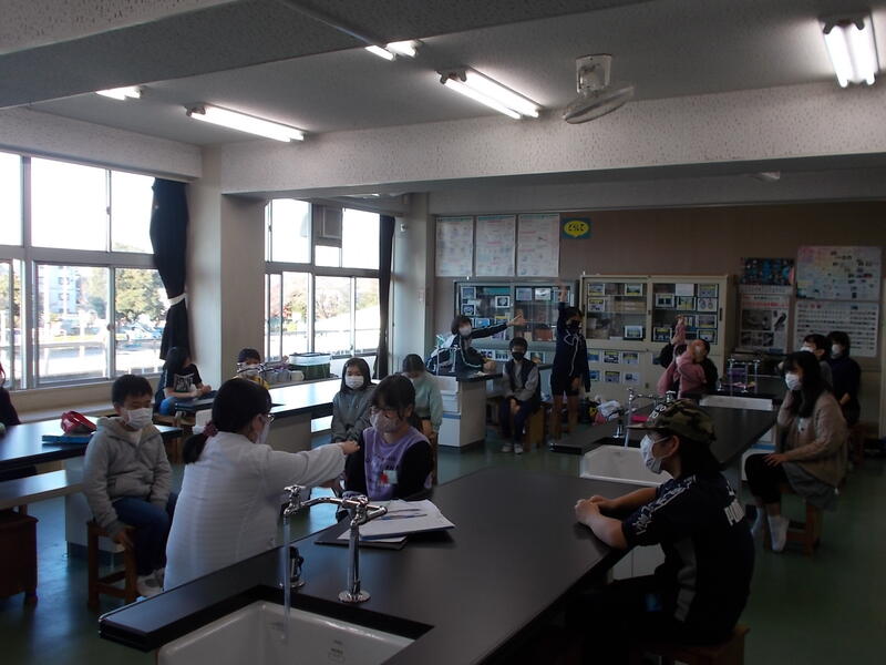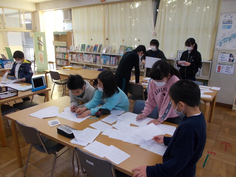 ながら実施。2年生は,5年生のお手伝いをしてもらいながら実施しました。
