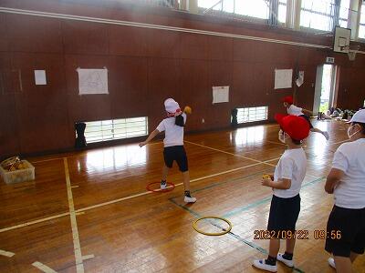 今日は,1年生の体育を見ました。校庭と体育館で分かれての授業でした。