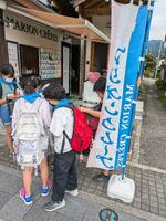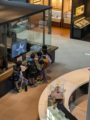 グループごとに見学しています。他校の児童もたくさんいますが、マナーを守って活動しています。