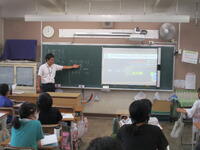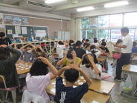 柏中学校との小中連携事業で、柏中学校の数学の先生に本校に来ていただき、6年1組で実際に授業をしていただきました。授業内容は、6年生の「比の性質」の学習です。子どもたちは、中学校の先生から直接授業を受けることができて、とてもうれしそうでした。最後は、「比カルタ」をグループで行い、等しい比を見つける活動に楽しく取り組んでいました。授業後、子どもたちから「楽しく勉強できました」「また教えてほしい」という感想が聞かれました。中学校の先生の授業を受ける機会は、なかなかないので、今後も柏中との連携を図っていきたいと考えています。