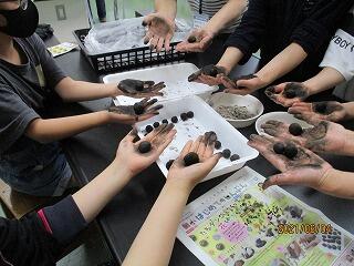 本日,6校時の委員会活動の時間に雨が降っていましたので,栽培委員会は,理科室にて『たねダンゴ』を作りました。