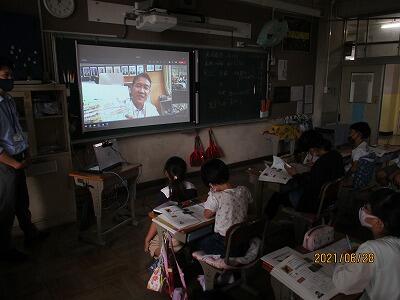 本日の3校時 社会科の授業の中で前の校長先生「江﨑 浩文先生」にTeamsで出演していただきました。ちょうど社会科で南房総市の花づくりについて学ぶところだったのでゲストティーチャーとしてお話を聞き,何人か質問まで答えていただきました。まさしく,インターネットで環境がつながれば,こんな授業も可能なのだということがよくわかりました。