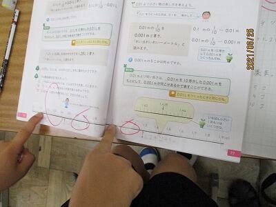 4年生の算数を参観しました。小数の学習では,端数の部分の大きさを表すのに,小数を用いること,小数の意味と表し方を理解し,整数と小数を区別できると構成や大小の比較がすぐにわかるのかな。