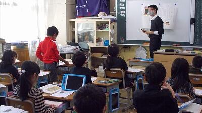 今日は,2校時に2年生の国語の授業を見ました。「わにのおじいさんのたからもの」