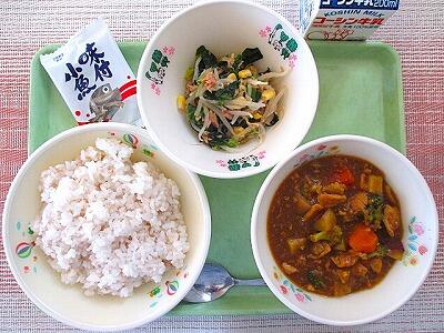 1月22日は「カレーの日」です。今から約40年前に学校の栄養士さんたちが中心になって「全国の学校で同じ日にカレーの給食を食べよう」という呼びかけをし,実施したのが1月22日でした。今日のカレーは,さつま芋・れんこん・ブロッコリーなどの冬の野菜がたっぷり入った「冬野菜のカレー」です。