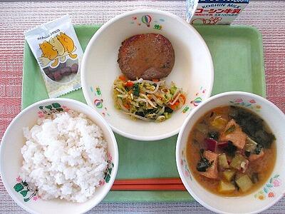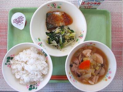 1月23日 牛乳 ご飯 鯖のおろし煮 磯香和え 芋煮 ひとくちぶどうゼリー