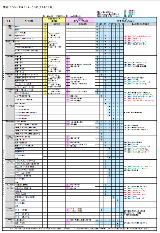 柏市情報リテラシー表 |