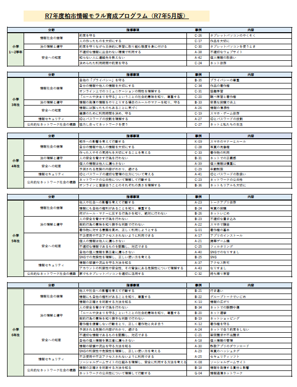 柏市情報モラル育成プログラム |