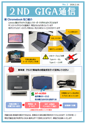 「GIGAスクール構想」第2フェーズを迎え、児童生徒の端末が全台新しくなります 更新に向けて、情報を公開していきますのでご確認ください 【2ND GIGA通信 Vol.1】↑クリックでPDF 【2ND GIGA通信 Vol.2】 ↑クリックでPDF