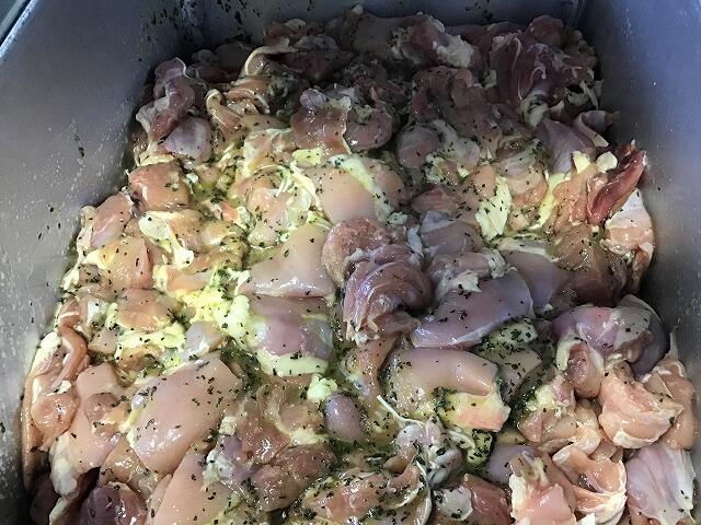 とり肉を下味につけたもの かぶ(全部でこの写真6つ分) シチューを混ぜているところ