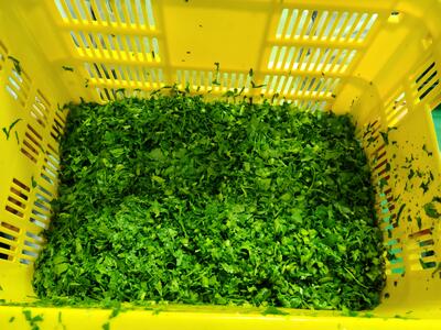 コールスローの名前の由来は、オランダ語でキャベツのサラダを意味する「コールスラ」から生まれたといわれています。キャベツの千切りやみじん切りをマヨネーズやフレンチドレッシングであえます。今日はフレンチドレッシングを給食センターで作りました。