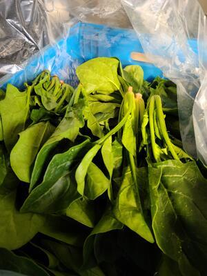 小松菜には体を作るカルシウムが野菜の中でも多く入っています。サラダのドレッシングは,給食センターで手作りしています。