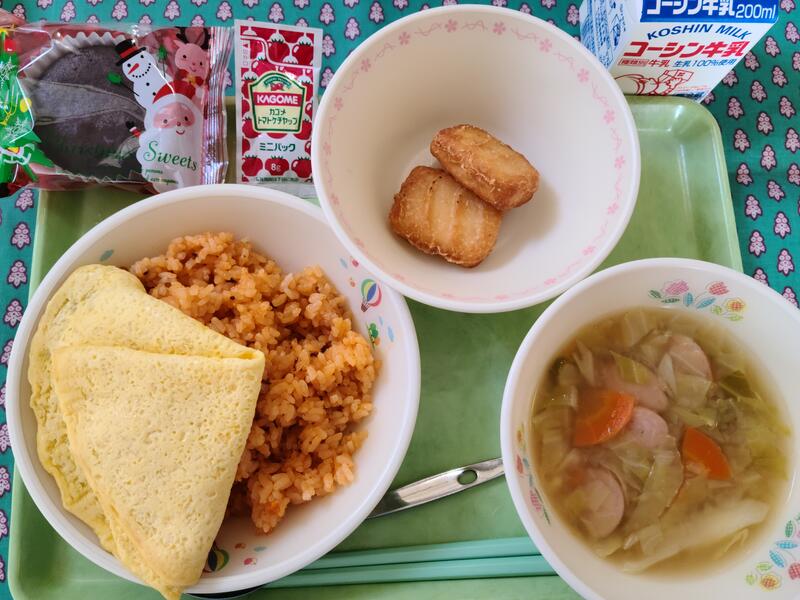 鶏肉は,給食センターで作ったオニオンソースをかけています。焼く前にも,特製のたれにつけています。2023年も残すところ2ヶ月となりました。