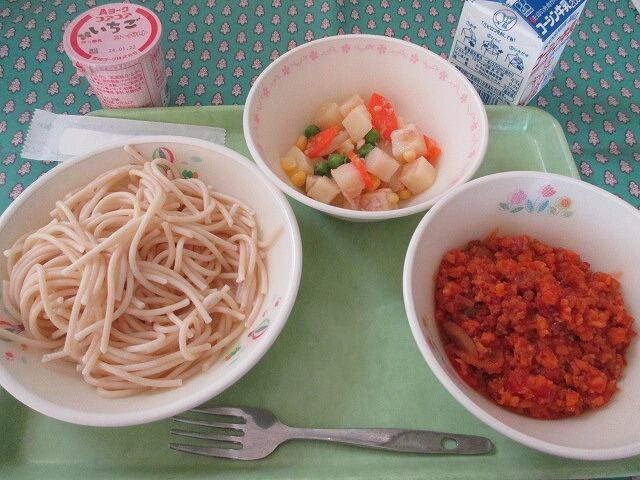11月2日 牛乳 スパゲティミートソース(スパゲティ・ミートソース) 芋餅(小1個・中2個)