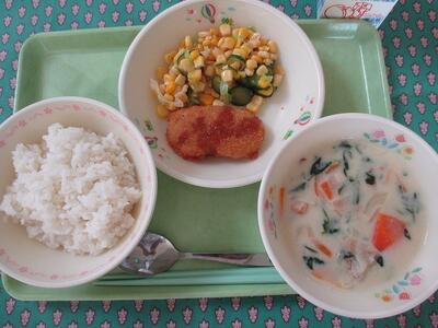 今日はハロウィーンにちなんでかぼちゃのスープを出しました。大きめのかぼちゃが入っています。かぼちゃはビタミン豊富で風邪の予防にも効果的です。
