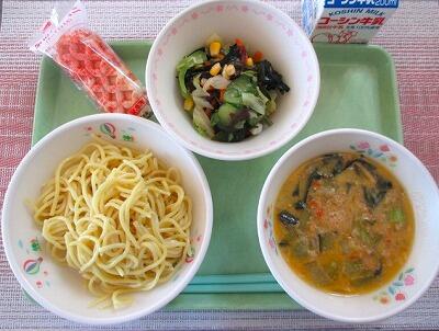 1月10日 牛乳 坦々風つけ麺(ちゃんぽん麺) 海藻サラダ チーズドッグ