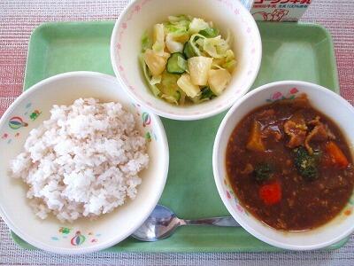 1月22日 牛乳 麦ご飯 冬野菜のカレー パインサラダ