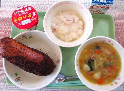 2月5日 牛乳 ココア揚げパン じゃが芋のチーズ煮 肉団子と野菜のスープ ヨーグルト