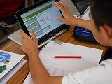 本時は,タブレットPCにスカイプをつなぎ、電子黒板で沖縄の人の様子を映し,グループごとにインタビューしていました。子どもたちのインタビューもとても上手で、充実した授業になりました。