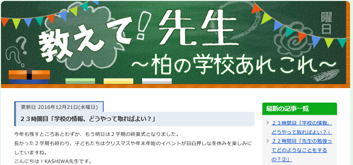 市のホームページにブログ開設 「教えて!先生~柏の学校あれこれ~」