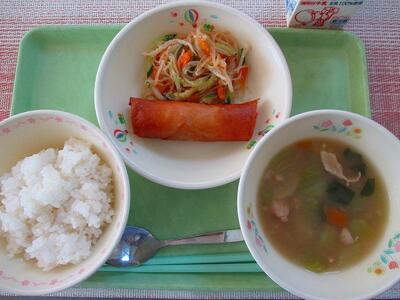 6月18日 牛乳 ご飯 春巻き バンサンスウ トック入りスープ