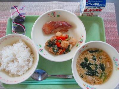 赤魚は皮が赤い魚で,今日は「アラスカメヌケ」というメバル(眼張)と同じ仲間です。身は白くてやわらかいのが特ちょうです。ドライプルーンは,成長期に必要な骨の成長を助けたり,体の調子を整えたりする栄養が入っています。苦手と思っている人も,ぜひ一口食べてみてください。