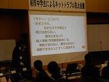 11/26(土),沼南庁舎の大会議室でネットトラブル防止会議が行われました。この会議は,市内の各学校の代表生徒が参加し,インターネットに関するトラブルを防ぐために,「柏市のおすすめルール」を考える会議です。