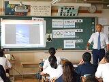 生徒達は,体育館でクラス全員やグループごとに,どうすれば課題を解決できるかを話し合いながら,運動することに楽しさを感じていました。その後は教室で,オリンピアンが経験した話や「オリンピックの価値」についての話を聞くことを通して,夢や目標を見つけてチャレンジすることの大切さを感じていました。