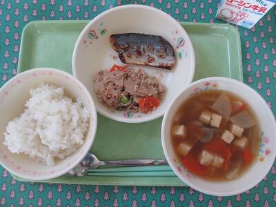 2月26日 牛乳 ご飯 鰆の西京焼き れんこんのおかか煮 けんちん汁