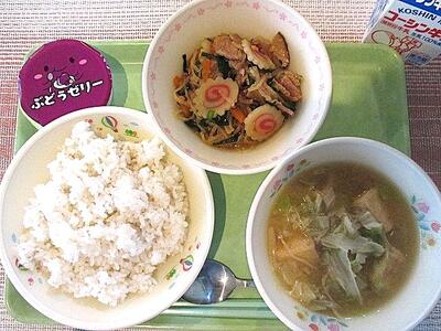 10月17日 牛乳 ご飯 鰯の蒲焼き ごまあえ どさんこ汁 アセロラゼリー