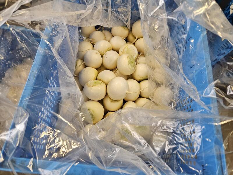 今日のかぶは柏の旧沼南でとれたかぶです。毎日かぶ農家さんは,どんな天気でも朝の5時くらいから収穫したり,洗ったりしているそうです。