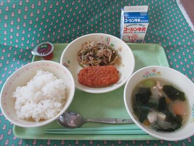 5月7日 牛乳 ご飯 油淋鶏(ユーリンチー)切干大根の中華和え 牛乳入り和風とんこつスープ