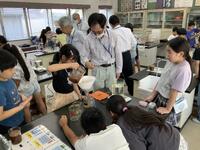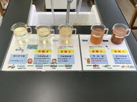 その後、グループごとに水質浄化実験を行いました。ココアパウダーを使って汚した水を、いくつかの処理をすることで透明な水にしていきました。