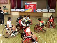 また、各クラスの代表児童が,試合の体験をしました。周りの熱い応援に背中を押され,一生懸命取り組みました。体験した子は、車いすの操作とボール操作を同時に行うことの大変さを感じながらも「楽しかった」「いい経験になった」などと話をしていました。