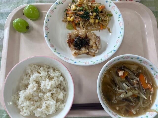 ◯今日の果物は,プルーンです。生のプルーンはこの時期にしか食べることができません。今日は,長野で取れたものを出しました。