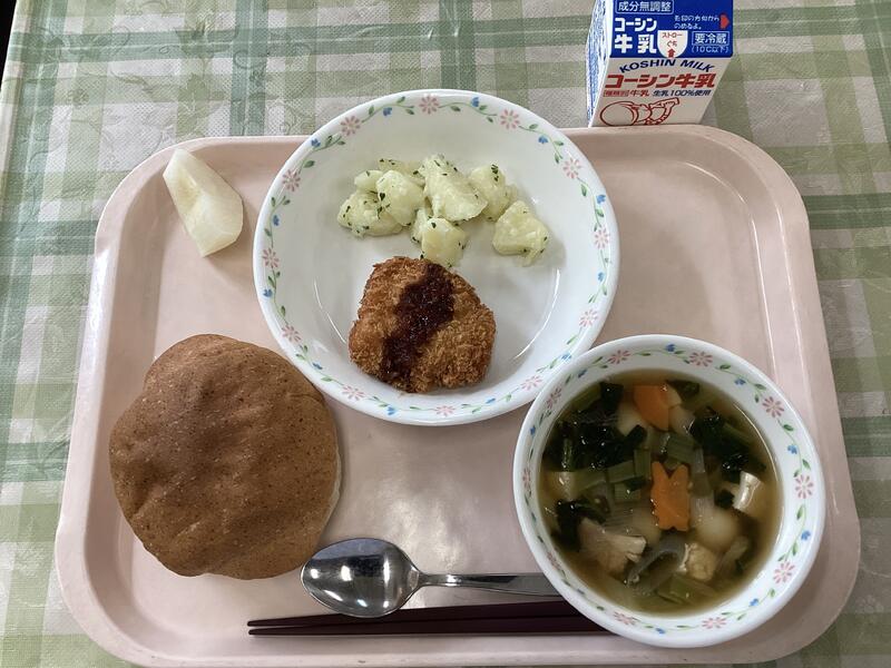 〇今日のスイートポテトは、給食室でさつまいもを蒸して、砂糖、バター、牛乳、生クリームを混ぜ練ってオーブンで焼きました。
