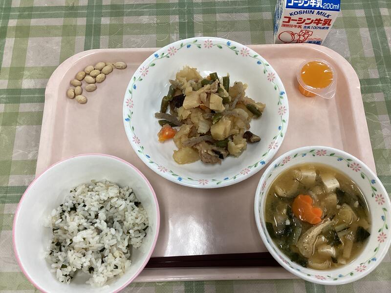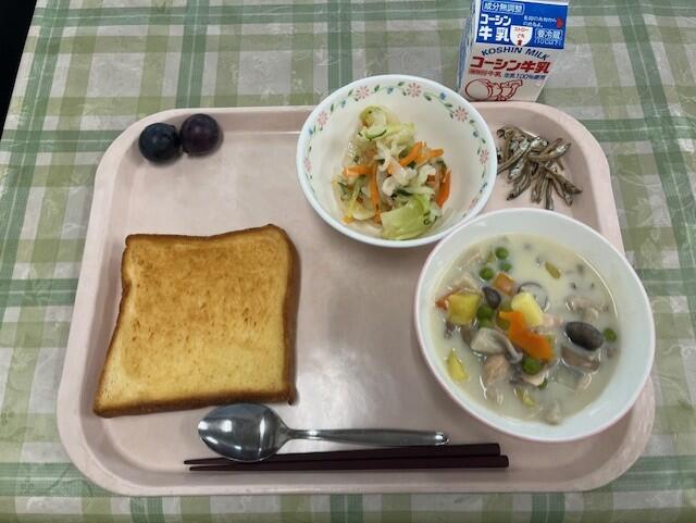 ◯今日の果物は,プルーンです。生のプルーンはこの時期にしか食べることができません。今日は,長野で取れたものを出しました。