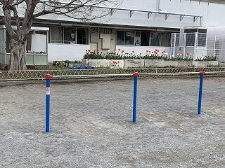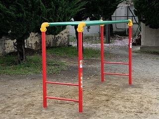本校の児童数と校庭の広さから考えると、なかなか充実した遊具を設置できませんが、第2校舎前に、新たに鉄棒を2基、プール前にうんていを1基設置しました。使用不可の遊具の修繕につきましても、引き続き教育委員会と相談して参りたいと思います。子ども達には、元気いっぱい、校庭で遊んでほしいと思います。