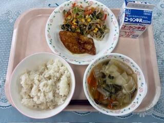 3月6日の給食 投稿日時 : 03/09 柏第一小学校管理者 牛乳 ご飯 たらの甘酢あんかけ ゆで野菜のごまサラダ ワンタンスープ {{options.likeCount}} {{options.likeCount}}