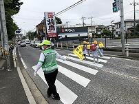 交通安全推進隊員やPTA校外部の皆様もご参加いただき,子供の下校を見守りました。普段お目にかかることのない警察や推進隊員に,子供たちは興味津々でした。