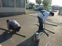 古い看板を手際よく解体し,新しい看板に作り替えました。