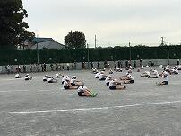 さわやかな秋晴れのもと,校庭で体育の授業参観を開催しました。