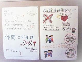 10月の生活目標「お互いのことを大切にしよう」の具体策の一つとして,全校でいじめのない学校にしていくために全校児童で行動宣言をしました。廊下には全員の行動宣言が掲示され,各箇所には,全校の代表として6年生の代表の行動宣言が掲示されました。