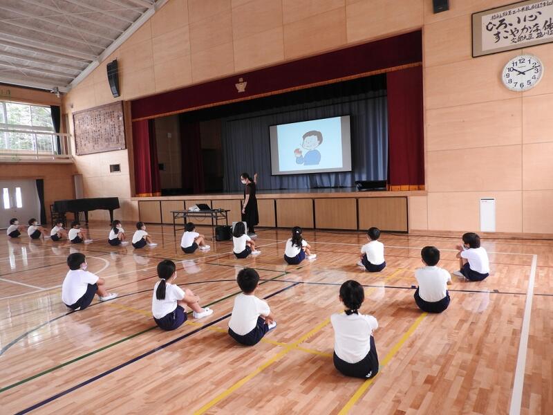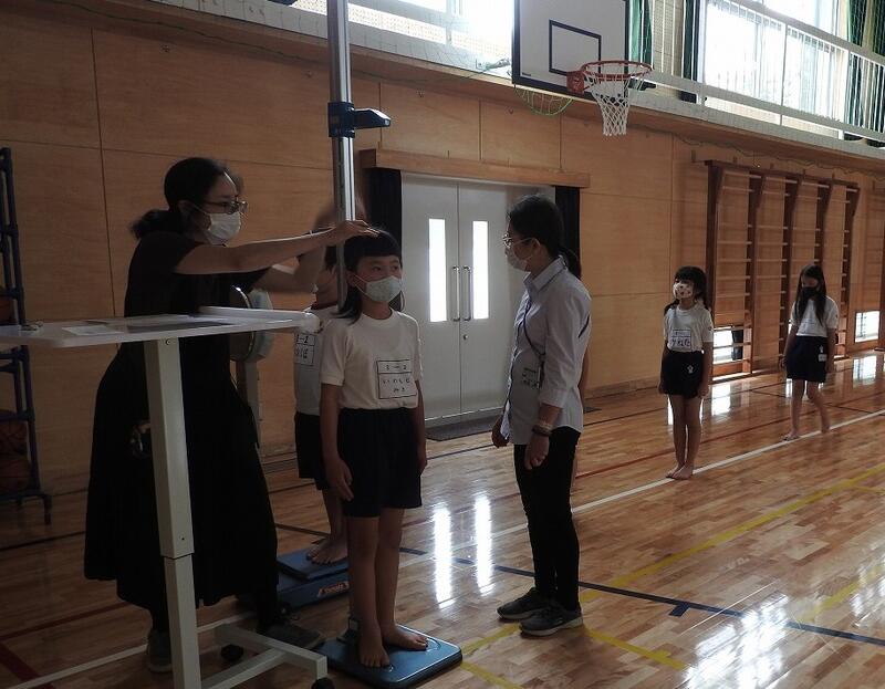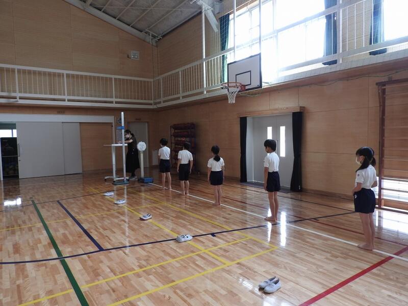 先日行われた身体測定では,密を避けるために十分距離を保ち,体育館での実施となりました。あわせて行った保健指導では,養護教諭の初澤先生から手洗いの仕方について詳しく学びました。爪の間や手首のしわの中などにも目に見えない細菌がいることを知り,素直に驚く姿が見られました。