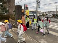 中学生の落ち着いたあいさつや優しい声かけに,小学生も自然と笑顔が広がり,