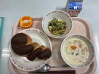調理師さんが心を込めて作ってくださった手作りチョコパンは,子どもたちに大人気。