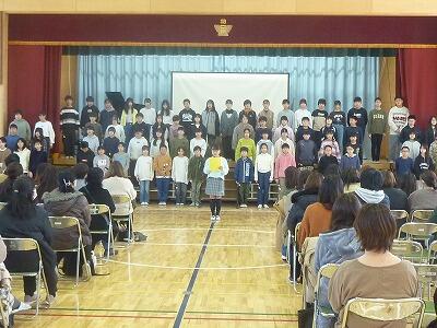 今年度は,呼びかけや合唱曲も行うことができました。退場時の表情が充実と未来へのを物語っているように思えます。4月からは,中学生です。さらなるご活躍を期待しています。