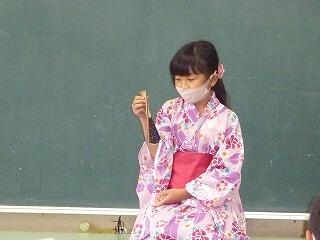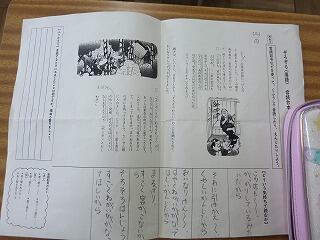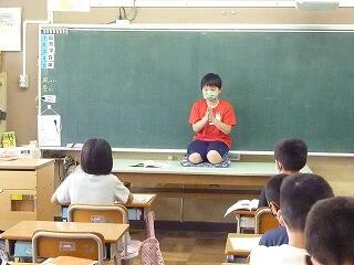 今日は,自分の好きな場面を選んで,音読したり落語のように演じたりする学習をしていました。台本には,どのように工夫するか書き込みがされていましたが,ほとんどの子供が暗記しており,せんすを持ってわらじを表現したり雰囲気が伝わるような言い方をしたりとその表現のすばらしさに感心しました。