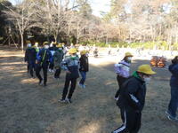 午前は,班ごとに自由行動の時間をとり,アスレチック施設で遊びました。昼食後に行われたキャンプファイヤーでは,ダンスやレクをして楽しみました。